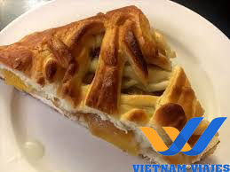 Este postre, que se parece un poco a una tarta de huevo magnificada, es una tarta de manzana. Los ingredientes del relleno son: manzana picada, azúcar de caña, queso, canela y pasas, etc.,