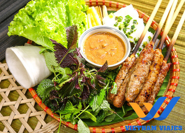 Es la comida preferida de los habitantes en Quang Binh, los materiales de este plato son carne del cerdo picadas, se agregar con pimienta, cebolla, ajo se mezclan como una pasta. Luego se pega esta pasta alrededor de los citronela a la parrilla. Se comer las citronela con pasta de la carne por mojar con una salsa típica picante.