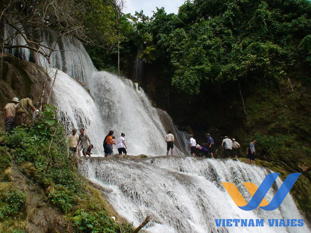 Es una de las mejores cascadas en Mu Cang Chai, está unos 15 km del centro puedes llegar al pueblo Mo De y luego hacer trekking para llegar a la cascada que te tarda aproximado 1 hora. La visitar cascada es lo ideal para hacer un senderismo a la zona. En camino verás un paisaje de naturaleza con muchas paradas para explorar el paisaje alrededor. La recomendación es que debes llevar agua y comidas para tu ruta, porque no encontrarás lugar que vender comidas en camino.