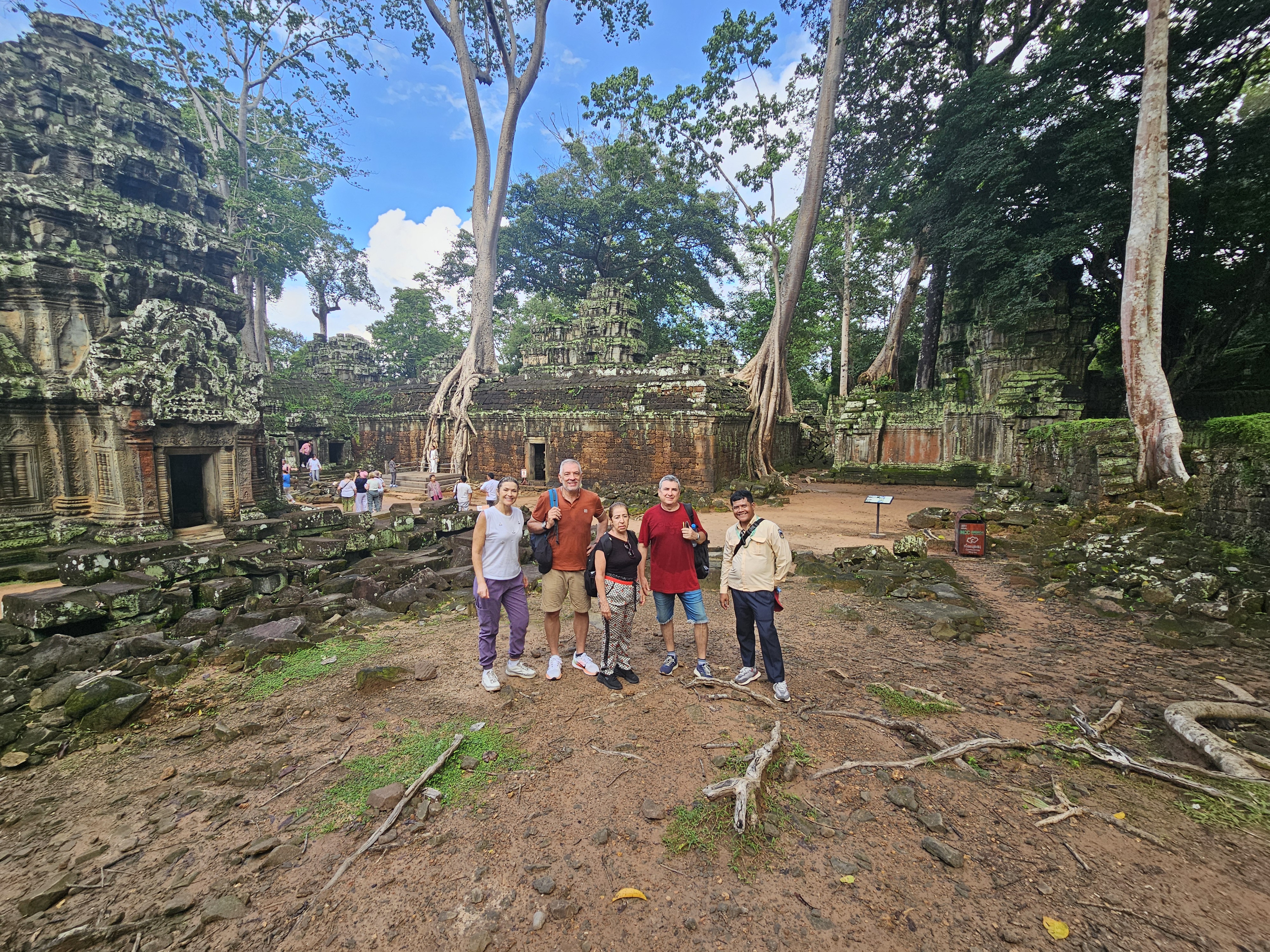 Desayuno en el hotel. Por la mañana salimos en tuk-tuk a visitar Angkor Thom (Gran Ciudad) comenzando con el pórtico Meridional y el famoso Bayon del siglo XII–XIII. Dedicado al budismo, este se compone de 54 gigantescas torres y de 216 caras de Avalokitesvara, es uno de los monumentos más apreciados de la ciudadela. La visita continúa con la terraza de los Elefantes, de 350m de largo, que acogía el fausto de las audiencias reales y de las ceremonias públicas, luego la terraza del Rey Leproso, plataforma del siglo XII, que presenta a varios admirables figuras esculpidas de apsaras... Por la tarde visitamos Ta Prohm, el templo escondido entre la maleza tropical, tal y como lo encontraron los exploradores franceses en los 1850. Luego, seguimos descubriendo el gran recinto de Angkor que comienza con el templo de Preah Khan, construido por Jayavarman VII en 1191 en honor a su padre, representado como el dios salvador del budismo mahayanista. Este monumento era de hecho una ciudad y también un lugar de estudios budistas. De la misma época, Neak Pean, única isla-templo de Angkor, o también llamado "Nagas abrazados". Se dice que representa simbólicamente Anavatapta: El lago sagrado y mítico del Himalaya, venerado en la India por las virtudes curativas de sus aguas. El gran estanque central está relacionado con 4 otros estanques más pequeños que representan los cuatro grandes ríos de la tierra y los cuatro puntos cardinales con cada uno una gárgola: El león, el caballo, el elefante y el hombre. Regreso al hotel. Comidas por su cuenta. Noche en el hotel.